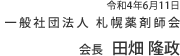 令和4年6月11日令和4年度一般社団法人札幌薬剤師会第31回通常総会にて会長に就任いたしました田畑隆政(たばた たかまさ)でございます。
